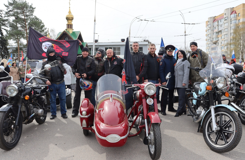 Колонна из почти 70 участников мотоклуба «Ночные Волки» проехала от стадиона «Динамо» до Парка Победы, привлекая внимание к «Диктанту Победы».