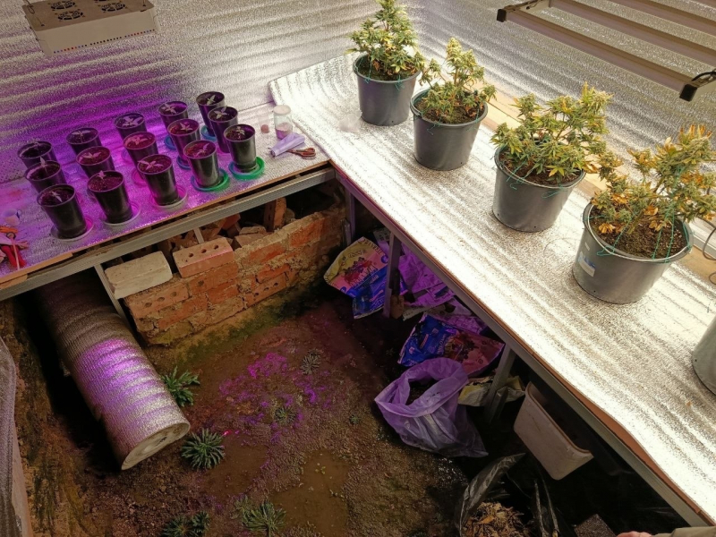 При дальнейшем обследовании гаража полиция нашла 21 куст растений, похожих на коноплю, а также удобрения. В помещении была обустроена теплица со специальным световым и тепловым оборудованием для выращивания.